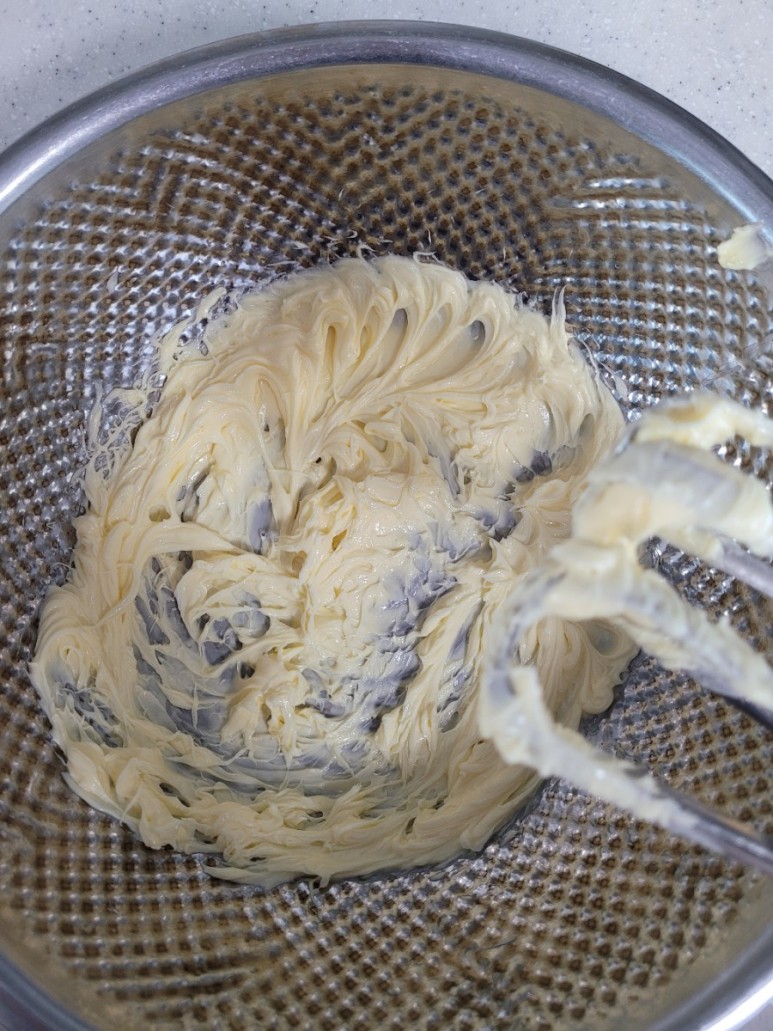 4. 버터를 휘핑기로 섞어줍니다.