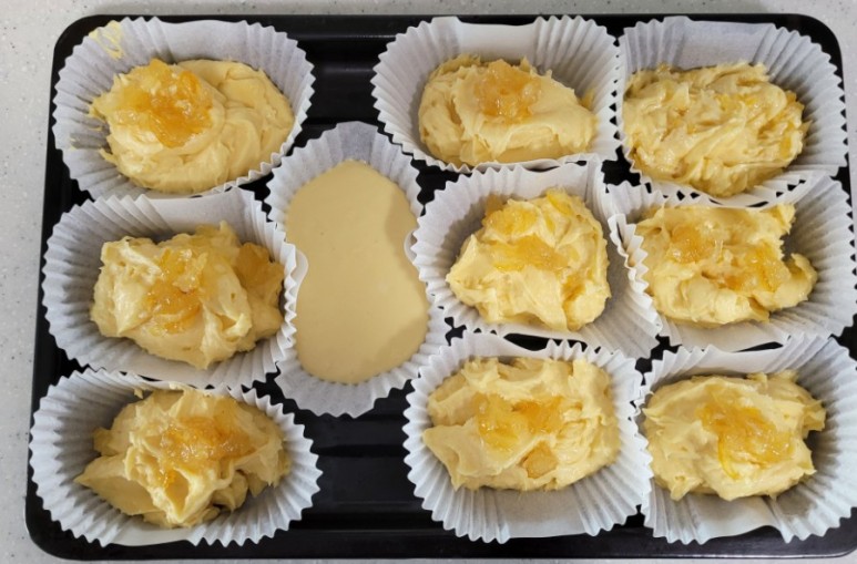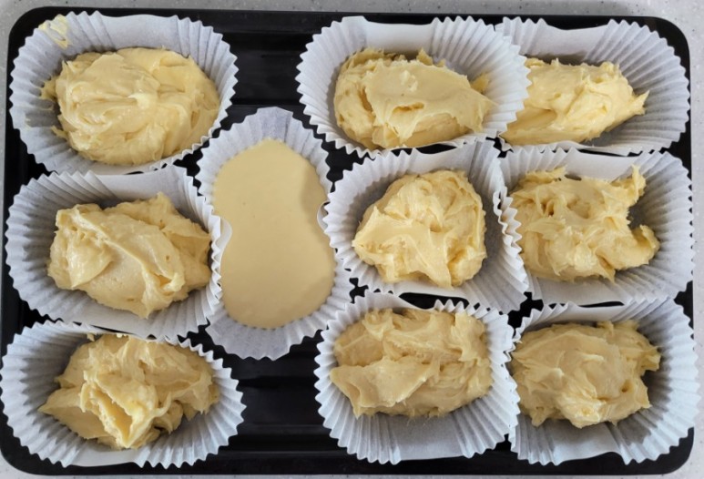 생크림 반죽이 유자 반죽보다 묽었어요.