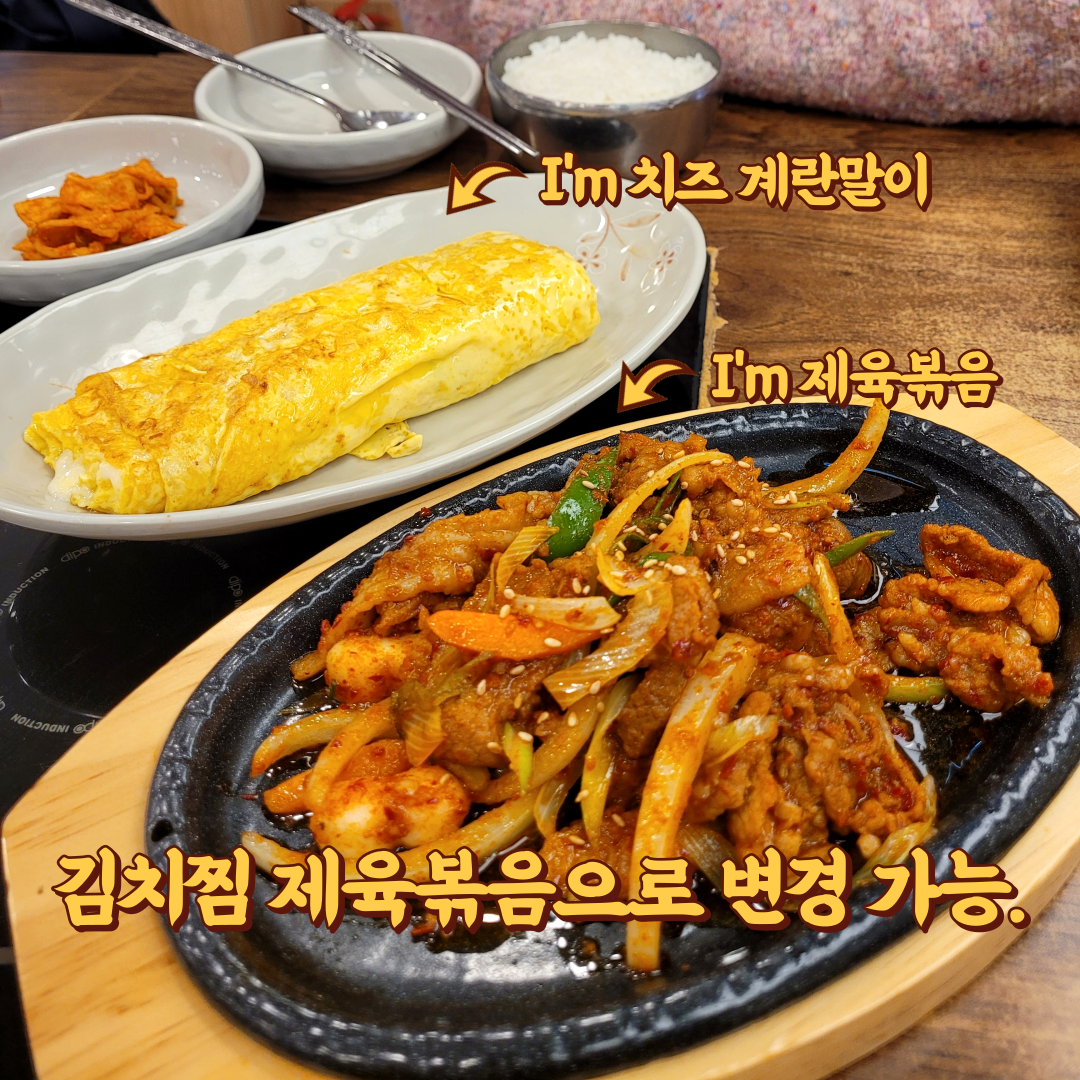🌱김치찜 세트는 김치찌개, 김치찜, 라면사리, 치즈계란말이, 거기다가 밥까지 나오는 구성입니다.