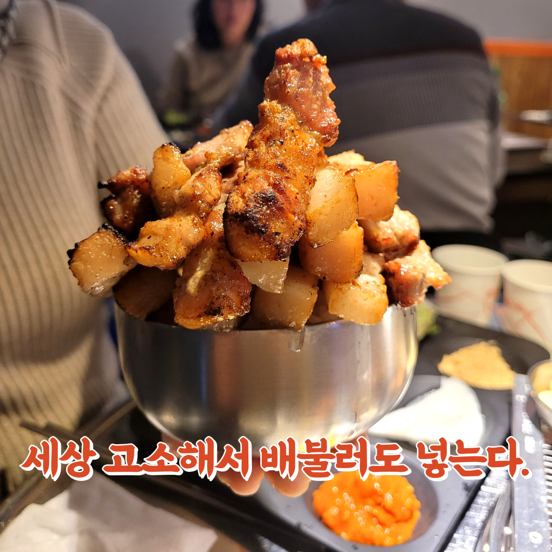 🌱통삼겹살도 두툼하고 고소해서 목구멍까지 올라오는데도 계속 우겨넣었어요.